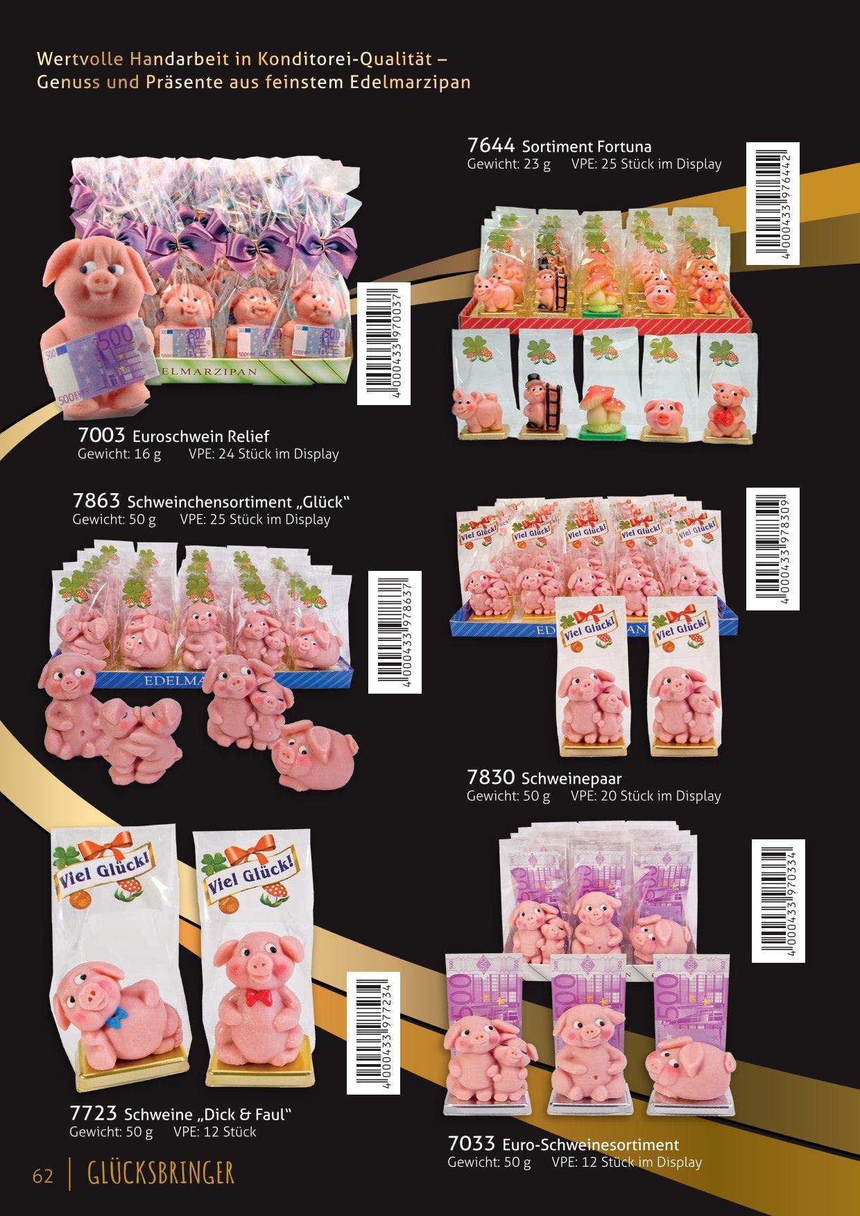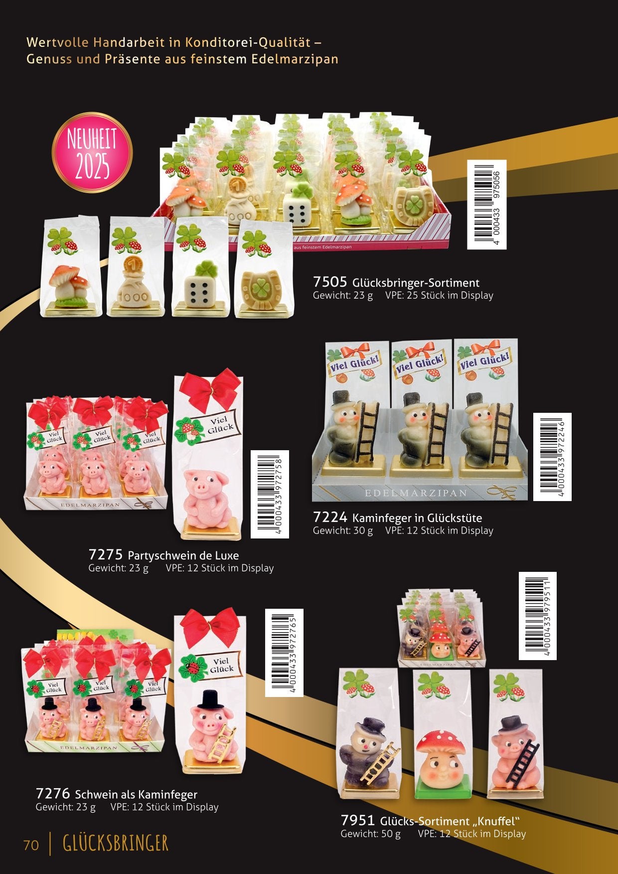 Ein süßes Stück Glück für dich und deine Liebsten! Unsere Marzipan-Glücksbringer in Form von Schweinchen, Kleeblättern und Hufeisen sind das perfekte Geschenk für Silvester, Neujahr oder besondere Anlässe. Verschenke Freude und Glück – mit handgefertigtem Marzipan!